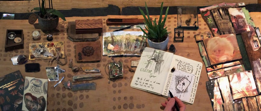 Naast maker ben ik ook een echte zoeker en vinder. Ieder mooi steentje, houtje of ander ‘vindsel’ gaat mee naar huis. Thuis begint een zoektocht naar nieuwe en andere vormen voor al die bij elkaar gesprokkelde materialen. Ook jouw ‘vindsels’ verdienen een mooie plek in een op maat gemaakt kunstwerk.