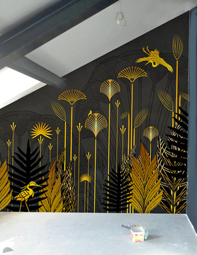 Wandvullend, op losse panelen, één strook of op blokken, ik maak wat je graag in huis, op kantoor of in de speelruimte wilt.